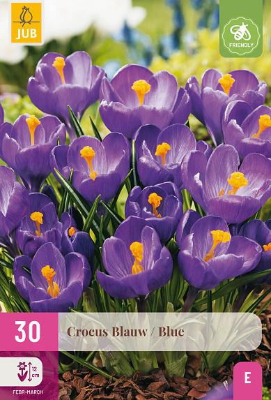 Balíček s veľkokvetými modrými krokusmi. Krásne v kombinácii s inými krokusmi, scilou, puschkiniou a chionodoxou. Na záhony aj do kvetináčov na terase alebo balkóne. Veľmi vhodné na naturalizáciu.