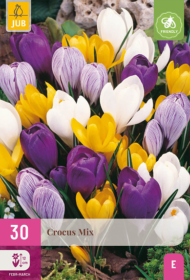Pekná zmes veľkokvetých krokusov. Pekná v kombinácii so scilou, puschkiniou a chionodoxou. V každej záhrade sa vždy nájde miesto pre niekoľko krásnych skupín farebných krokusov. Na záhony aj do kvetináčov na terase alebo balkóne. Veľmi vhodné na naturalizáciu.