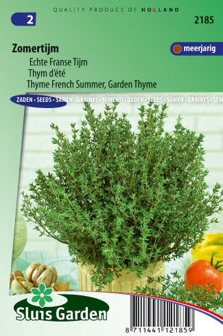 Záhradný tymián kvitne v nasledujúcom roku v máji až júni, fialkovými, niekedy ružovými či bielymi kvetmi. Má otepľujúci efekt, je veľmi aromatický a podporuje trávenie jedla. Listy sa pridávajú do mäsitých jedál alebo ťažšej zeleniny. Sušený si uchováva arómu. Vyžaduje slnečné, suché, vápenaté stanovište. Na zimu ho prikrývame.