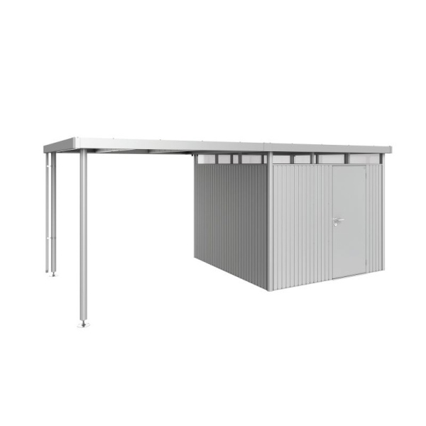 Bočná strecha od veľkosti H2 vždy na strane s dažďovým žľabo – voliteľne jedno alebo obojstranne fixovaná. Kompletná stavebná sada s podperami a jedným dažďovým zvodom. Povrch strechy vždy v kremeňovosivej metalickej farbe.