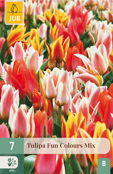 Pekná zmes tulipánov greigii. Kvitnú v apríli. Krásne v záhone, ale ideálne aj do kvetináča na terase alebo balkóne.