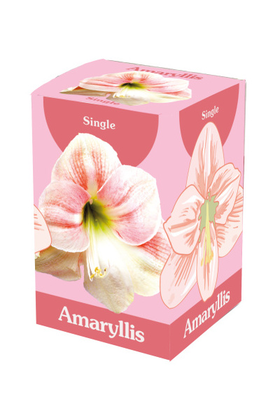 Darčeková krabička s 1 amarylisom, jednoduchým, ružovo bielym. Zasaďte cibuľku do kvetináča naplneného čerstvou zeminou. Asi tretina cibule musí trčať nad zeminou. Na dno kvetináča umiestnite vrstvu drenaze alebo hydrogranule. Najmä na začiatku nezalievajte príliš veľa.