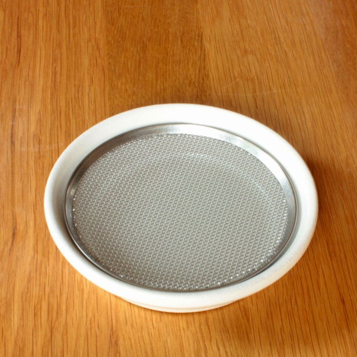 Glazovaná robustná keramická miska nenáročná na starostlivosť, vypaľovaná pri teplote viac ako 1200°C, bezpečná pre potraviny. Stupienok na vnútornom okraji misky drží nerezové sitko v požadovanej vzdialenosti od dna misky a korene tak majú potrebný priestor na zdravý vývoj.