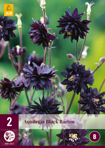 Aquilegia (Columbine) Black Barlow kvitne svojimi takmer čiernymi kvetmi od mája do júna. Aquilegia sú známe a možno aj milované tým, že sa samy vysievajú. Krásne sa kombinujú s inými ružovými či fialovými trvalkami. Aquilegia preferuje slnečné miesto, ale často sa jej darí aj v polotieni. V zásade postačuje každý typ pôdy s výnimkou (ťažkých) hlinitých pôd. Výška Aquilegia Black Barlow je 50-60 cm.