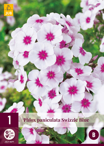 Phlox paniculata Swizzle Blue je krásny výber do záhrady s bielo-ružovými kvetmi. Kvety sú skrútené v púčiku, rozdelené na päť okvetných lístkov a otvor v strede. Kvety vydávajú jemnú vôňu a sú príťažlivé pre motýle Phlox má aj holandský názov plameňový kvet Výška 50-60 cm. Phlox paniculata Swizzle Blue je trvalka, ktorá najlepšie rastie v záhrade. Vykopte priestrannú výsadbovú jamu a dobre uvoľnite pôdu. Zlepšite chudobnú záhradnú pôdu primiešaním kompostu a peliet z kravského hnoja. Koreňový bal Phloxu umiestnite do správnej výšky do výsadbovej jamy. Vrch koreňového balu by mal byť tesne pod úrovňou pôdy. Výsadbovú jamu naplňte zeminou a pevne pritlačte. Ihneď po výsadbe zalejte. Phlox dobre rastie a kvitne na plnom slnku alebo v polotieni a je to aj krásna rezaná kvetina. Pred zimou stonky nad zemou odumierajú. Rastliny na zimu prikryte vrstvou opadaného lístia. Aplikujte záhradné hnojivo skoro na jar. Na jar odrežte všetky listy. Čoskoro sa nad zemou objavia nové výhonky.