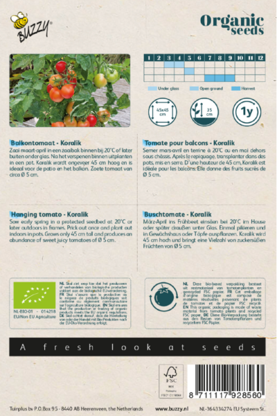 Rajčiak kríčkový BIO Koralik cca 10 semien.