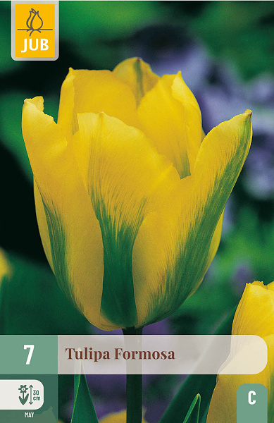 Formosa má krásny žltý kvet so zeleným pálením. Zasaďte tulipán na pekné miesto v záhone alebo ich zasaďte viacero v kvetináči na terasu či balkón. Vďaka pevnej stonke je Formosa vhodná aj na rezané kvety. Pekne sa kombinuje s tulipánom Esperanto.
