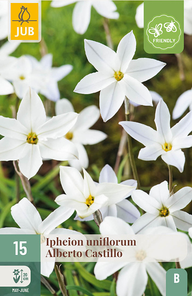 Má jemný biely kvet v tvare hviezdy. Listy sú trochu trávnaté. Ipheionu sa darí v svetlom tieni, ale v skutočnosti je to skutočný milovník slnka. Ipheion kvitne bohato s dostatkom slnka a tepla. Vhodný na naturalizáciu.