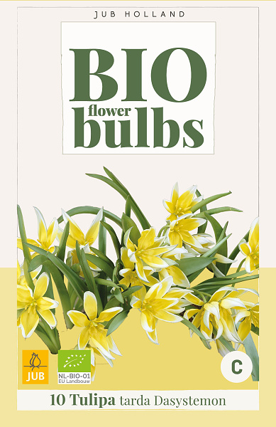 Viackvetý druh tulipánu so žltými a bielymi kvetmi. Krásny do záhonov, kvetináčov a na naturalizáciu. Vyskúšajte s botanickými narcismi, sasankami alebo hyacintmi hroznovými. Pestovaný organicky.