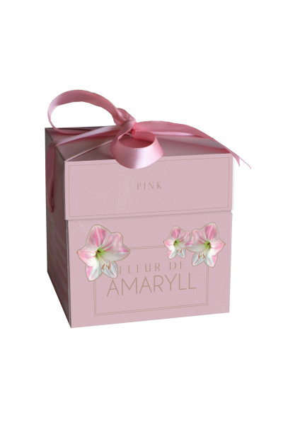 Fleur d'Amaryll v krásnej dekoratívnej darčekovej krabičke. Vrátane zlatého kvetináča a zeminových tabliet. Zasaďte cibuľku amarylisu do kvetináča. Asi tretina cibule môže vyčnievať nad zem. Na dno kvetináča umiestnite vrstvu frenáže alebo hydrogranule. Nezalievajte príliš veľa, najmä na začiatku.