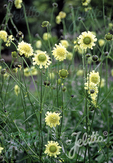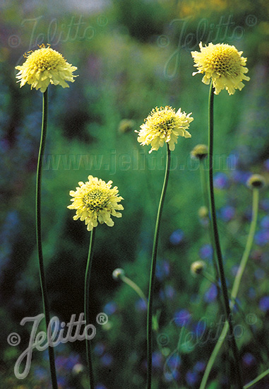Nádherná, svetlo žlto sfarbený kvet typu scabiosa rastúci na dlhých stopkách vhodná k rezu, medonosná