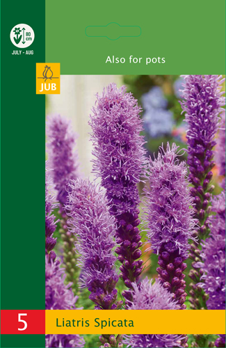 Liatris spicata. Je to krásna fialová rastlina, ktorá sa tiež nazýva horiaca hviezda. Vysaďte ich na pekné slnečné miesto v záhrade do hĺbky 10 cm. Liatris spicata vyrastá do výšky 80 cm. vysoká. Kvety sa dajú použiť aj ako rezané kvety.