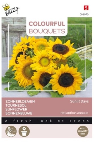 Zmes slnečníc veľmi vhodných do vázy ako rezaná kvetina, ale aj do kvetináčov na terasu či balkón. Z týchto rôznych druhov ročných polovysokých slnečníc si môžete vytvoriť krásnu slnečnú kyticu. Užite si deň s krásnou kyticou z vlastnej záhrady. Tieto slnečnice je možné vysievať v interiéri od marca do konca apríla alebo von od apríla do júna. Výška cca. 75 cm