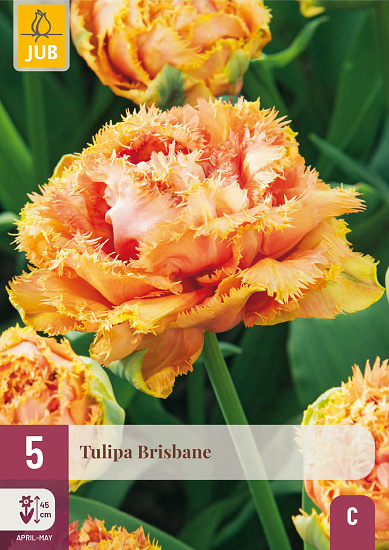 Ružovo oranžový strapkatý tulipán. V záhrade púta pozornosť. Krásny záhradný tulipán, vhodný aj do kvetináča na terasu alebo balkón. Pekne sa kombinuje s inými strapkatými tulipánmi a odrodami Muscari.