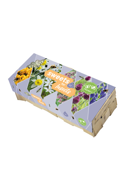 Zmes 50 cibúľ na naturalizáciu, prilákanie včiel a iného hmyzu, balená v drevenej krabičke