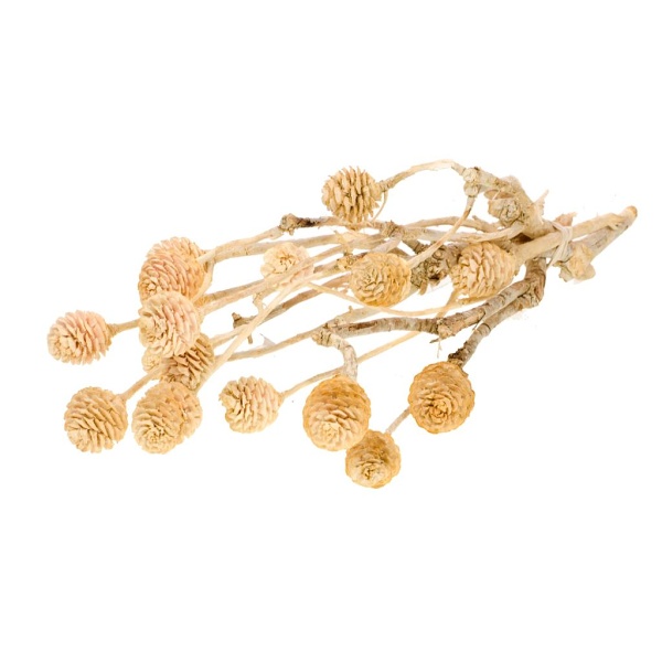 Muirii cone sú stonky sušeného Leucadendron muirii. Pochádzajú z Južnej Afriky a rastú na nízko rastúcom kríku. Šišky sú naozaj krásne a dokonca vyzerajú, akoby mali nádych mrazu, aj keď je to samozrejme ich prirodzená farba. Vo zväzku je 5 stoniek a všetky majú úžasne odlišné tvary. Keď sú tieto šišky a stonky bielené, vytvárajú skutočnú nádheru. Dĺžka stonky je 40 cm