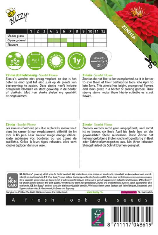 Cínie nemajú rady presádzanie, preto je lepšie ich vysievať na miesto určenia koncom apríla až koncom júna. Táto cínia má jasne oranžovo-červené kvety a vyzerá skvele v hraničnej alebo zbernej záhrade. So svojimi silnými stonkami veľmi vhodné ako rezané kvety.