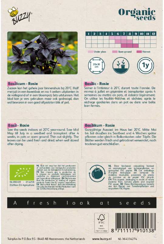 Môžete siať v interiéri po celý rok pri 20°C. Od polovice mája do júla do sadbovačov a po 4 týždňoch vysádzajte na otvorenom priestranstve alebo do kvetináča. Ak je potrebné, popretŕhajte. List môžete použiť čerstvý, ale aj sušený alebo skladovať v dobre uzavretej plechovke či dóze.
