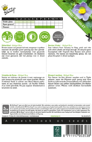 Ľahko pestovateľná izbová rastlina s voňavými modrými kvetmi a žltými tyčinkami. Listy sú krásne lesklé. Neumiestňujte rastlinu na priame slnečné svetlo.