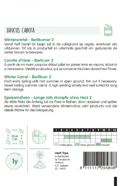 Výsev od polovice marca do začiatku júla na otvorenom priestranstve v radoch; možno preriediť. Táto odroda je produktívna a mimoriadne vhodná na vnútorné skladovanie počas zimy.