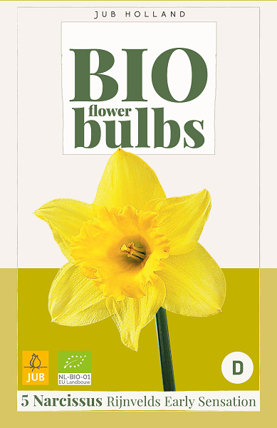 Najskoršie kvitnúci trúbkový narcis. Organicky pestovaný. Krásny žltý kvet so stredne veľkou korunou. Narcis Rijnvelds Early Sensation je silný a odolný voči poveternostným vplyvom.