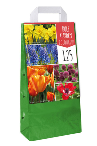 125 jarných cibuľovín v 5 odrodách: oranžové tulipány Triumph, sasanky Hollandia, žlté narcisy, cesnak a modrica armeniacum. Tieto druhy sa dajú pestovať v kombináciách. Tieto cibuľoviny sú tiež vynikajúce na pestovanie v kvetináčoch na terase alebo balkóne.