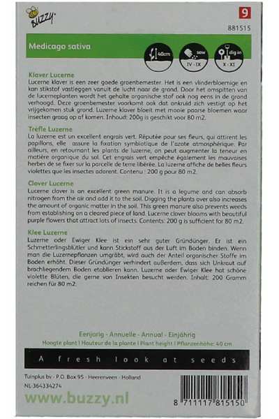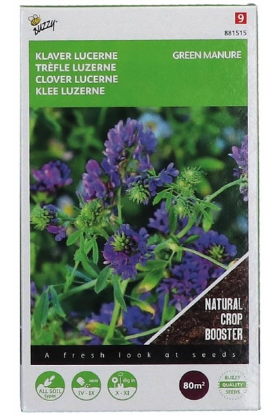 Veľmi dobré zelené hnojenie. Je to strukovina a dokáže viazať dusík zo vzduchu na zem. Zakopanie lucerny tiež zvyšuje obsah organickej hmoty v pôde. Toto zelené hnojenie zároveň bráni usadzovaniu buriny na voľnom pozemku. Kvitne krásnymi fialovými kvetmi, ktoré lákajú hmyz.