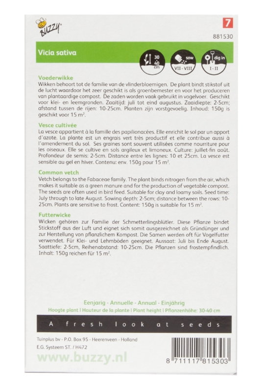 Vika patrí do čeľade bôbovitých. Rastlina viaže dusík zo vzduchu, vďaka čomu je veľmi vhodná ako zelené hnojenie a na výrobu kompostu. Semená sa často používajú v krmive pre vtáky.