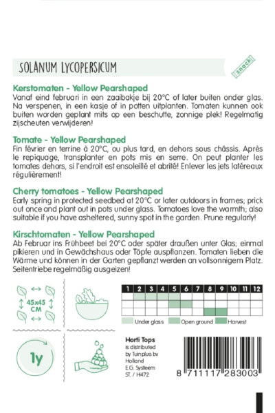 Výsev skoro na jar pri teplote 20 °C alebo neskôr von pod sklo alebo do kvetináčov. Paradajky milujú teplo; vhodné aj na pestovanie vonku, ak máte v záhrade chránené slnečné miesto. Pravidelne vyštipujte zálistky!