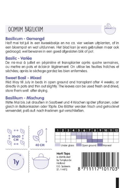 Zmes obsahuje 4 druhy bazaliek, citrónovú, škoricovú, červenú a obyčajnú bazalku.