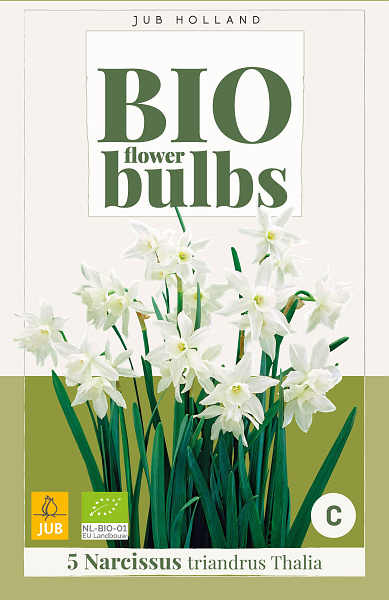 Thalia je pôvabný viackvetý narcis s nádhernou vôňou. Kvet aj kalich sú krémovo biele. Tri až štyri kvety na stonke. Pekne sa kombinuje s trvalkou Brunnera macrophylla. Okrem toho sa Thalia dobre kombinuje s mnohými inými jarnými cibuľovinami. Je to veľmi vhodný narcis na naturalizáciu. Krásny v záhone, ale aj v kvetináčoch na terase alebo balkóne. Pestovaný organicky.