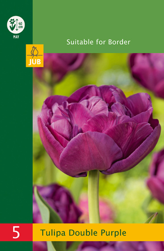 Krásny plnokvetý fialový tulipán. Krásny ako skupina v záhrade alebo v kvetináči. Vhodný na kombináciu s hyacintmi a muscari.