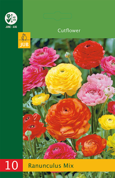 Ranunculus Mix. Ranunculus je bohatá letná rastlina, ktorá vám bude prinášať radosť celé mesiace. Ranunculus Mix kvitne celé leto od júla do prvých nočných mrazov. Ranunculus dorastá do výšky približne 30-40 cm. Tento ranunculus je preto vhodný aj na výsadbu do záhonu. Ranunculus sa môže vysádzať na jar. Vykopte priestrannú jamu na výsadbu, uvoľnite pôdu a jamu naplňte dobrou zeminou. Hľuzy opatrne umiestnite do jamy na výsadbu a prikryte 3-5 cm zeminy. Vzdialenosť hľúz pri výsadbe je 10-15 cm. Hľuzy zalejte ihneď po výsadbe. Ranunculus najbohatšie kvitne na plnom slnku a dobre sa kombinuje s trvalkami a inými cibuľovitými druhmi kvetov. Zmes kvetov je v záhone skutočným pútačom pozornosti. Po odkvitnutí hľuzy uskladnite na mieste bez mrazu a budete sa z nich tešiť roky.