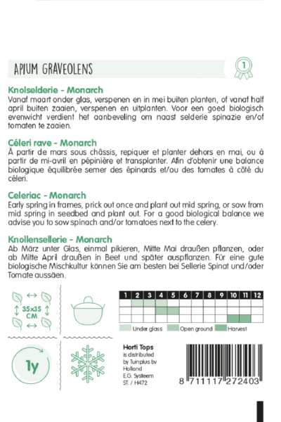 Tvorí veľké buľvy, produkt pestovateľskej kvality, nemá problémy s rastovými výhonkami. Pre dobrú biologickú rovnováhu sa odporúča siať spolu so zelerom špenátom a/alebo paradajkami.