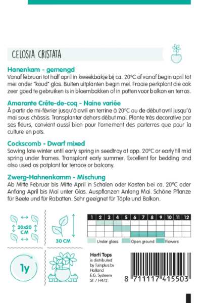Výsev vo vnútri od polovice februára do apríla pri teplote 20 °C alebo od začiatku apríla do mája von. Presaďte na konečné stanovisko začiatkom mája.