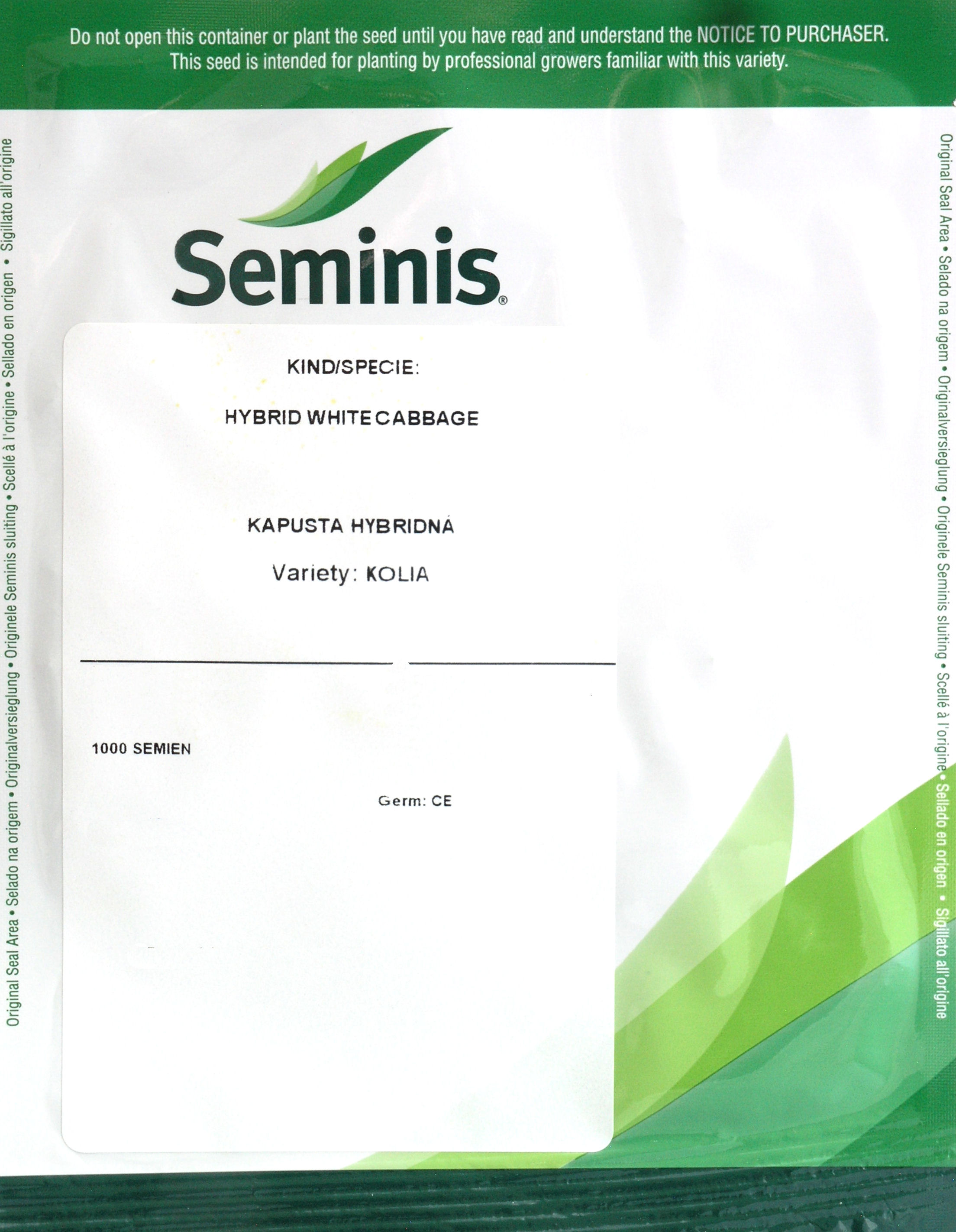 Kapusta biela pre priemysel Kolia F1 (Seminis)