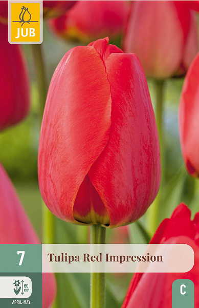 Majestátny, klasický červený hybridný tulipán so saténovým leskom. Obrovské kvety. Pôsobivé. Najlepšie vynikne ako skupina v záhone, ale vhodný aj do kvetináča na terasu alebo balkón.