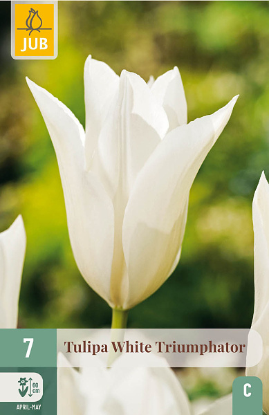 Najkrajší tulipán kvitnúci ako biela ľalia. Pútavý doplnok do záhrady. Výrazný, elegantný záhradný tulipán, vhodný aj do kvetináča na terasu alebo balkón. Pekne sa kombinuje s inými ľaliokvetými tulipánmi.