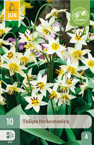 Viackvetý tulipán s bielymi kvetmi a žltým srdcom. Krásny do záhonu, ale vhodný aj do kvetináča na terasu alebo balkón. Pekný v kombinácii s narcismi, sasankami a modricami. Výborný na naturalizáciu.