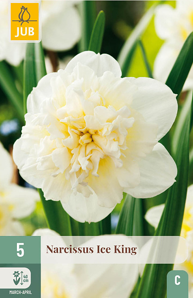 Ice King je krásny, plnokvetý narcis. Kvety sú jemne žlté s bielou farbou. Je to veľmi vhodný narcis na pestovanie. Ice King je pútavý do záhonov, ale je krásny aj v kvetináčoch na terase alebo balkóne. Pekne sa kombinuje s muscari, hyacintmi a tulipánmi.