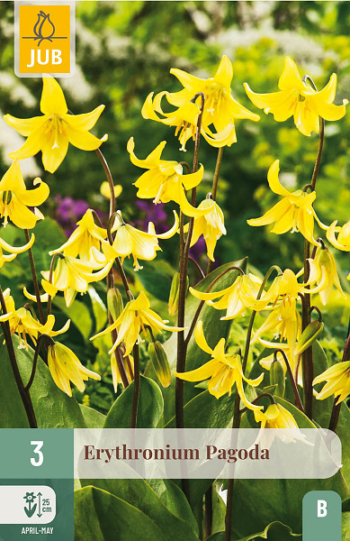 Erythronium Pagoda má krásne kvety v tvare zvončeka. Toto erythronium kvitne v apríli až máji. Stanovište by malo byť slnečné až mierne zatienené. Dbajte na to, aby cibuľky nevyschli, preto ich po príchode zasaďte čo najskôr.