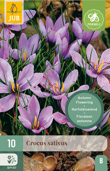Toto je krokus, z ktorého sa extrahuje vzácne farbivo šafran. Okrem farby sa v jedlách cení aj jeho aromatická, korenistá chuť. Cibuľky zasaďte ihneď po dozretí. Kvety sa objavujú už na jeseň. Vynikajúce na naturalizáciu.