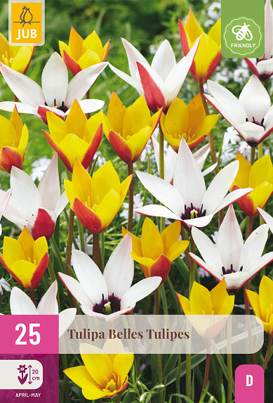 Vonkajšie okvetné lístky sú tmavokarmínovočervené s bielym okrajom, zatiaľ čo vnútorné okvetné lístky sú takmer celé biele. Keď sú kvety úplne otvorené, vynikne fialovomodré srdce a modré tyčinky. Krásny botanický tulipán, ktorý by nemal chýbať vo vašej záhrade. Krásny v záhone, ale aj v kvetináči na terase alebo balkóne.