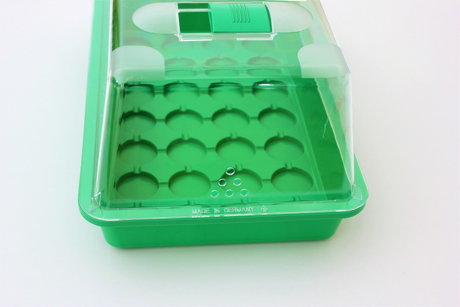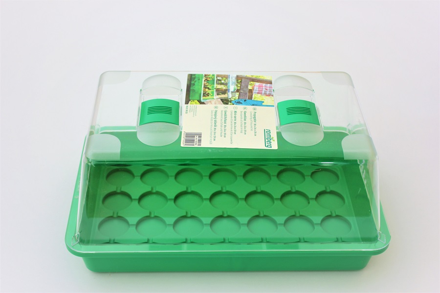 Pre jednoduchšiu prípravu priesad odporúčame miniskleník. Miniskleník poskytuje rastlinám optimálne podmienky pre prípravu priesad a pestovanie niektorých rastlín- optimálne svetlo, teplo, vlhkosť. Na vrchnáku je nastaviteľná ventilácia. Spodok je vyformovaný pre optimálne umiestnenie 28 kokosových tabliek.