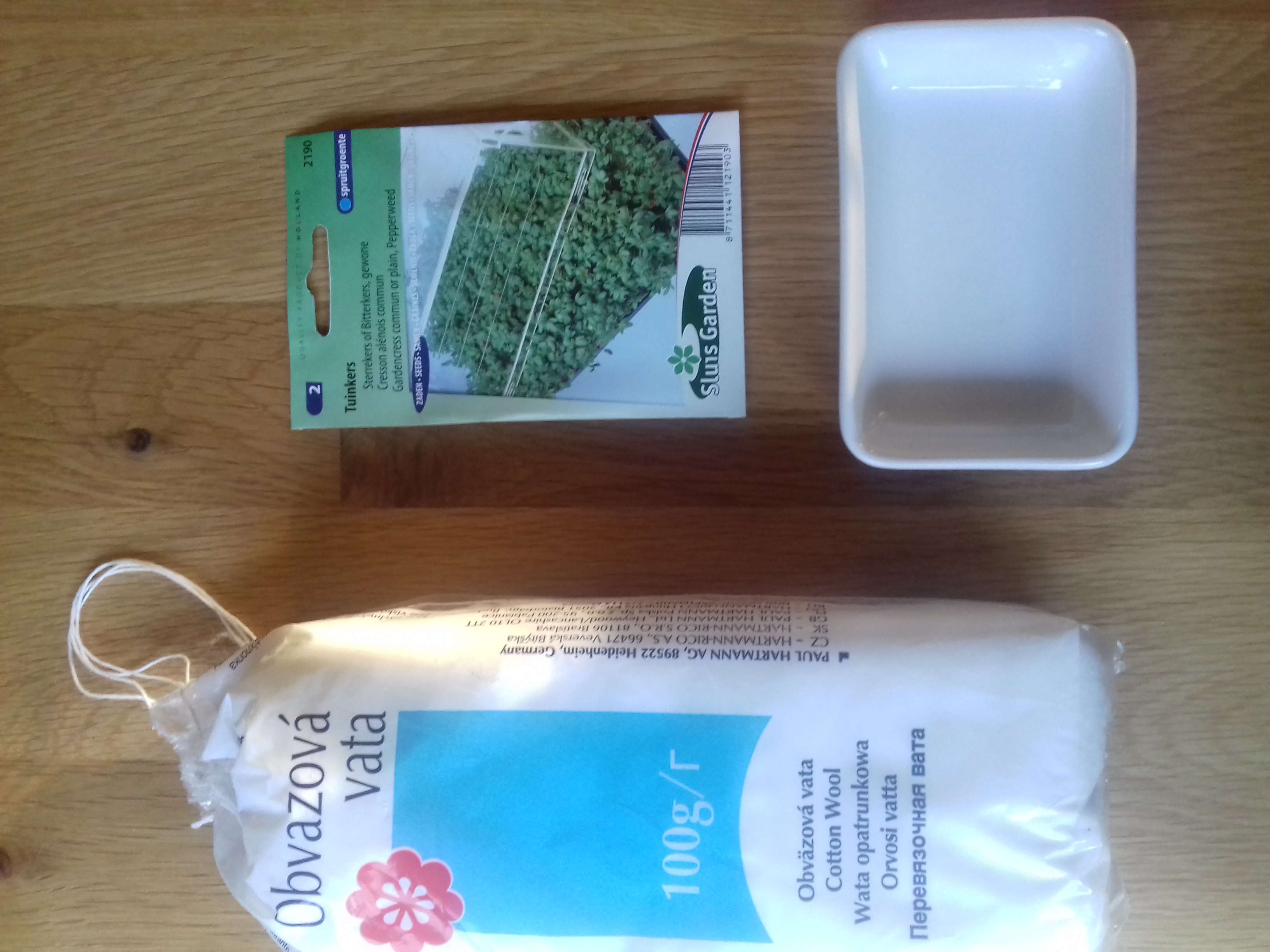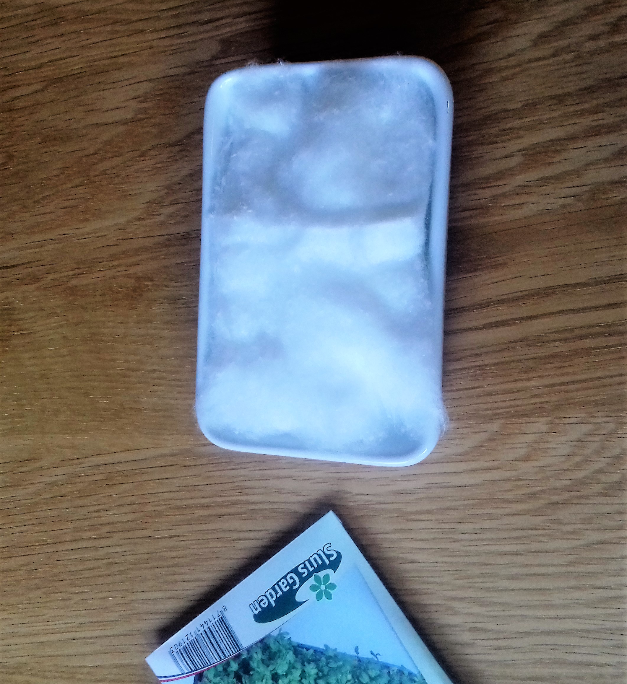 1. Do misky rozložíme vatu, ktorú si potom navlhčíme.
