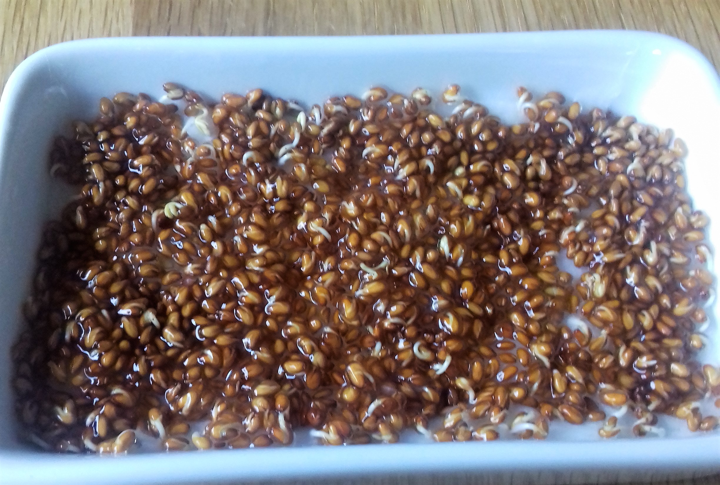 2. Na navlhčenú vatu nasypeme nahusto semená žeruchy a misku umiestnime na teplé miesto v byte.